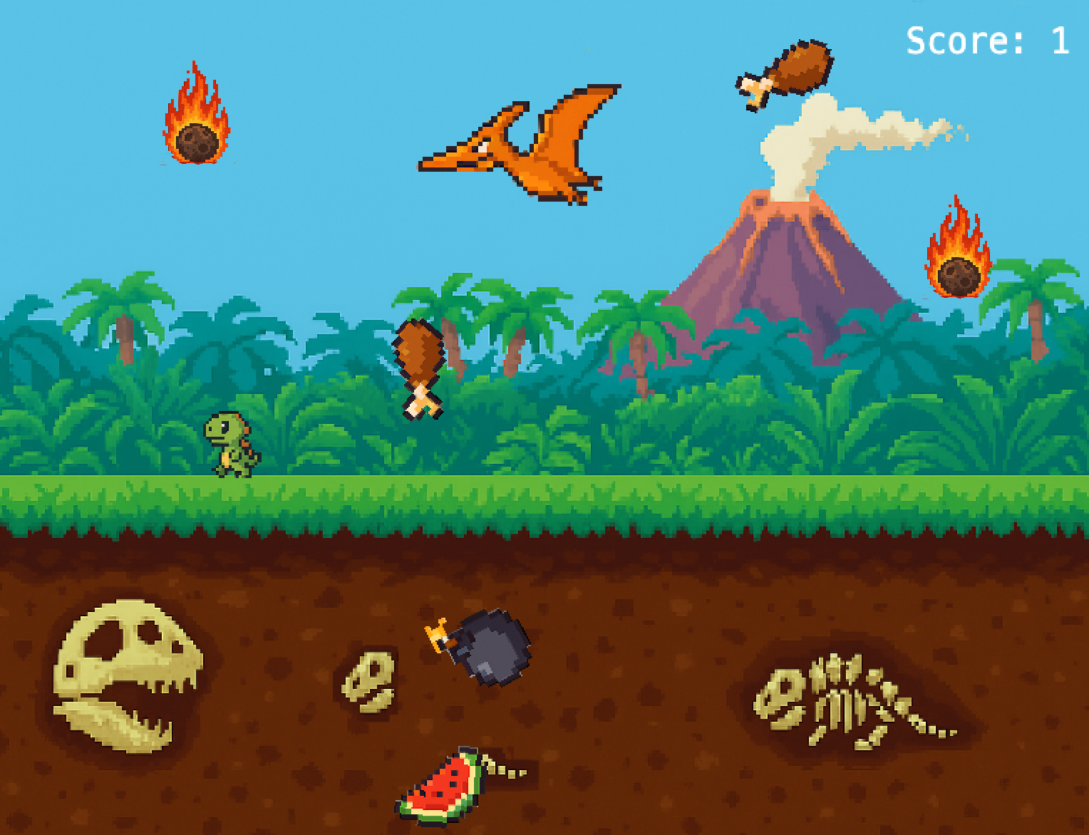 - 💣 Explosive hazards: Avoid bombs and flaming meteors unless you fancy extinction - and watch out for that sneaky dive bombing pterosaur!
